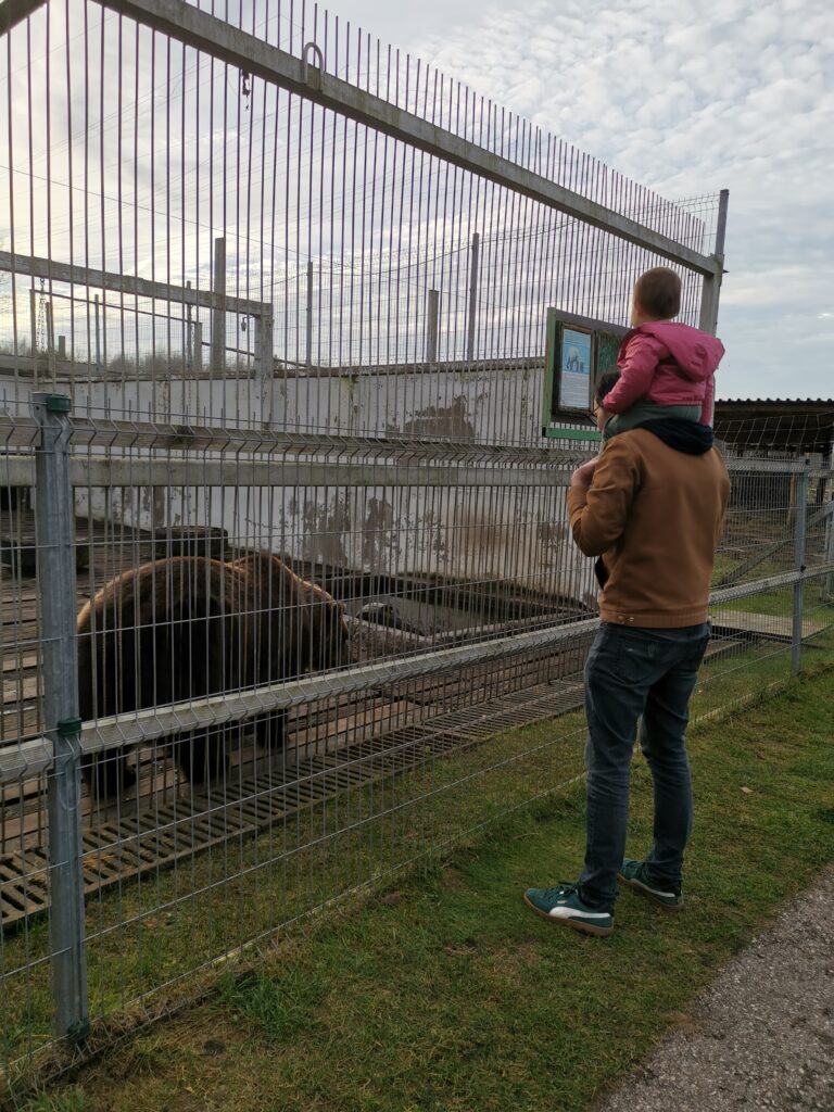 Entre un ours dans une mini cage, une famille d’ânes dans un petit enclos très sale et les cygnes noirs sous filet, j’ai eu de la peine pour certains animaux. Et vu le nombre hallucinant de paons et de cochons d’Inde, la stérilisation n’est visiblement pas une option.