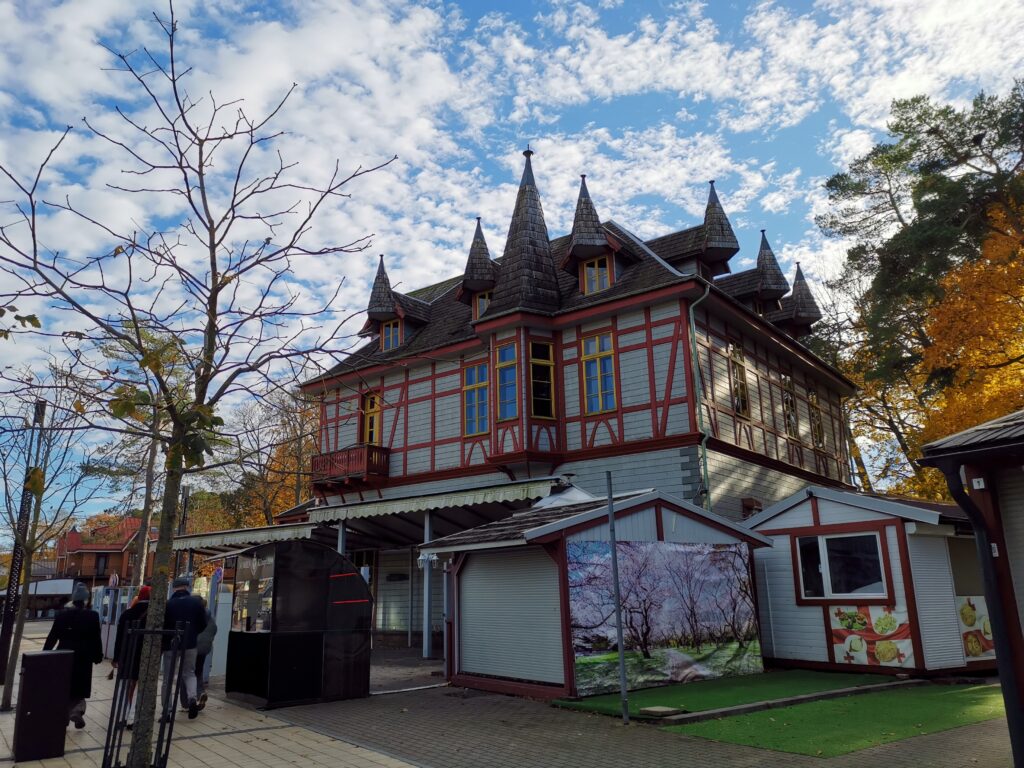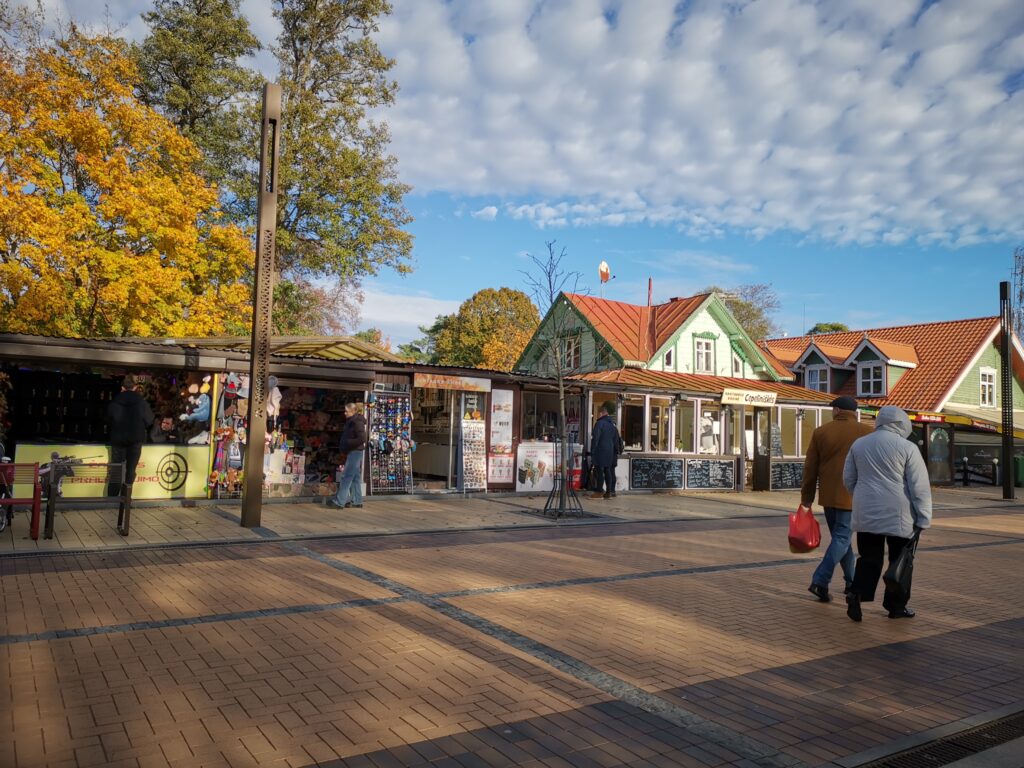 J’ose à peine imaginer à quoi ressemble l’endroit en été, particulièrement en soirée. On doit se marcher dessus. Rien que sur la plage, 10 emplacements de restaurants (un seul d’ouvert hors saison). Des stands forains partout. Mais voilà l’atout du hors saison : pouvoir visiter sans être dégouté d’un lieu à cause de la foule (d’ailleurs, hors saison, le stationnement est gratuit à Palanga). J’ai donc apprécié la balade, que nous avons prolongé sur la plage en cherchant de l’ambre de la Baltique.